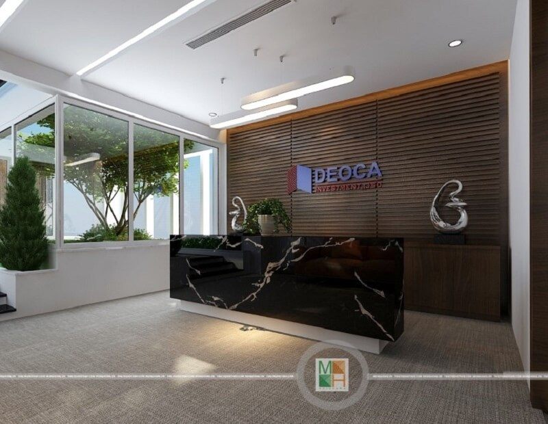 Mẫu thiết kế nội thất sảnh văn phòng công ty sang trọng với sự kết hợp đồ nội thất độc đáo