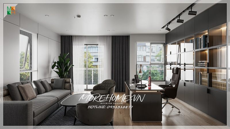 Cửa kính giúp không gian căn phòng trở nên sang trọng, chống tiếng ồn mang lại hiệu quả làm việc cao.