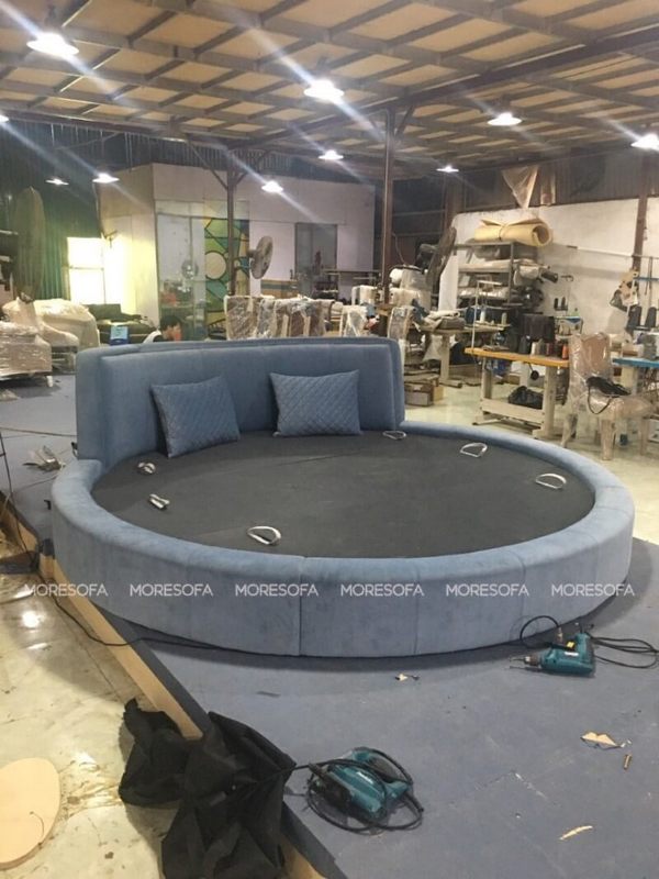 Độc đáo, lạ mắt với mẫu giường ngủ hiện đại tròn bọc nỉ đẹp cho nhà riêng của khách ở Trường Chinh.