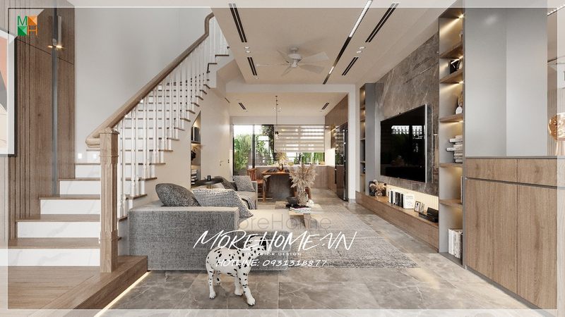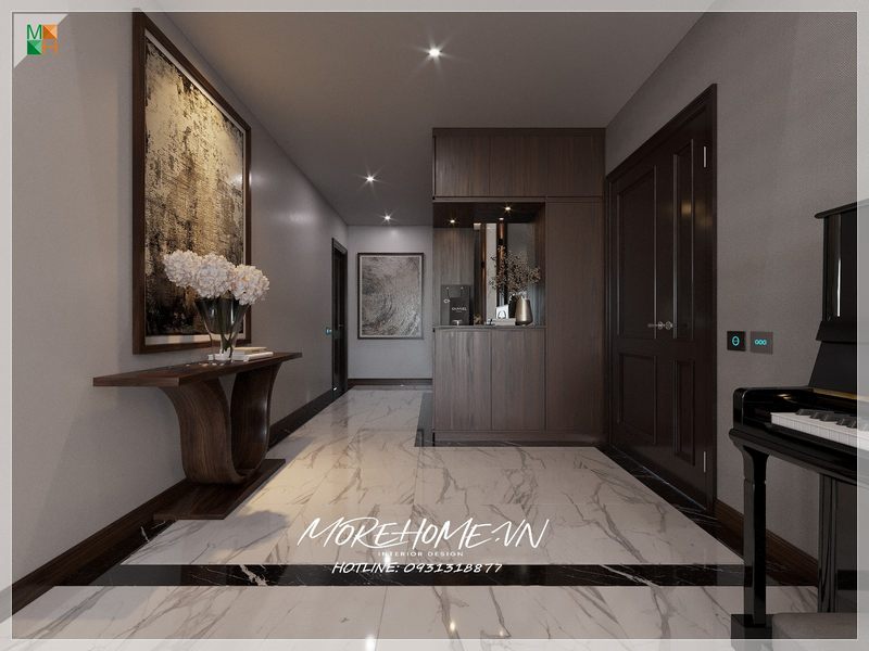 Thiết kế sảnh chờ sang trọng với nội thất gỗ tự nhiên cao cấp cho biệt thự