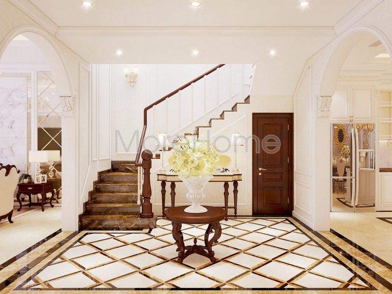 Các chi tiết tân cổ điển, chúng ta lại thấy nhiều hơn các chi tiết đường cong mềm mại, gợi một không gian sống nhẹ nhàng, tinh tế, mang nét đẹp cổ điển châu Âu xưa