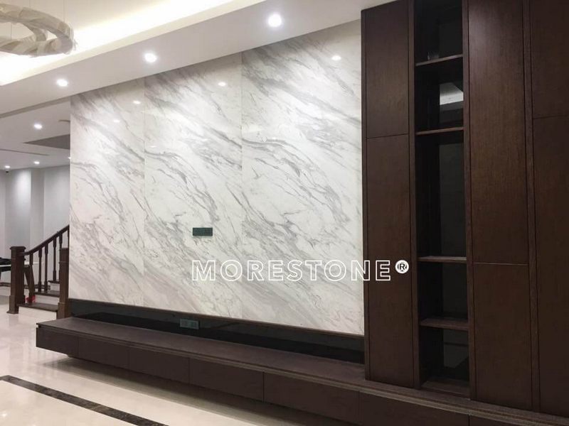 Mẫu đá ốp sàn màu trắng vân mây sang trọng tăng sự tiện nghi cho không gian nơi đây.