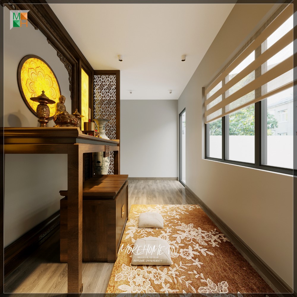 Tủ thờ được thi công phù hợp với không gian nhà, có tính năng sử dụng và độ đẹp cao.