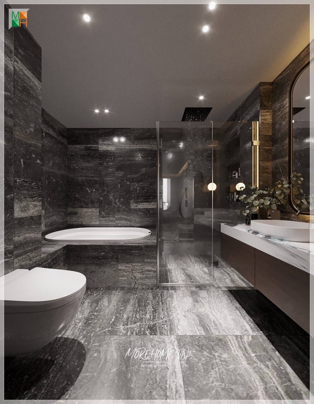 Thêm vào vẻ đẹp thiết kế tổng thể của ngôi nhà, phòng tắm cũng mang đến không khí thư giãn và tự hào cho chủ nhân. Đó là không gian riêng tư, nơi bạn có thể dành thời gian cho bản thân mỗi ngày để tái tạo năng lượng sau những giờ làm việc căng thẳng. Phòng tắm không chỉ đơn thuần là nơi vệ sinh cá nhân mà còn là nơi bạn có thể thoải mái tận hưởng khoảnh khắc riêng tư bên trong lòng thành phố ồn ào.