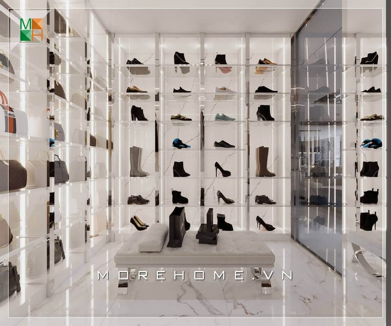 Sàn nhà được thiết kế bằng đá tự nhiên màu trắng cao cấp giúp tạo ra một không gian thoáng mát, sáng và sạch sẽ hơn.
